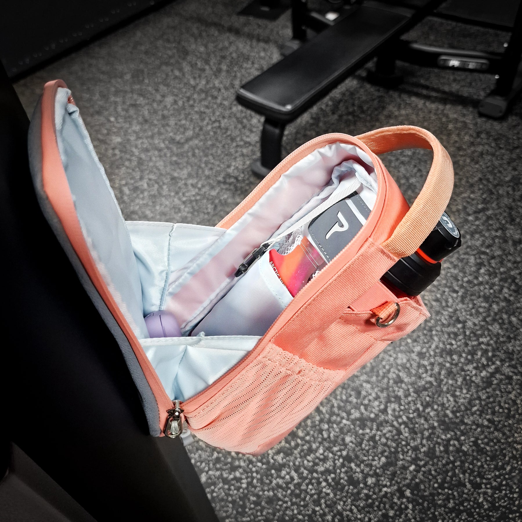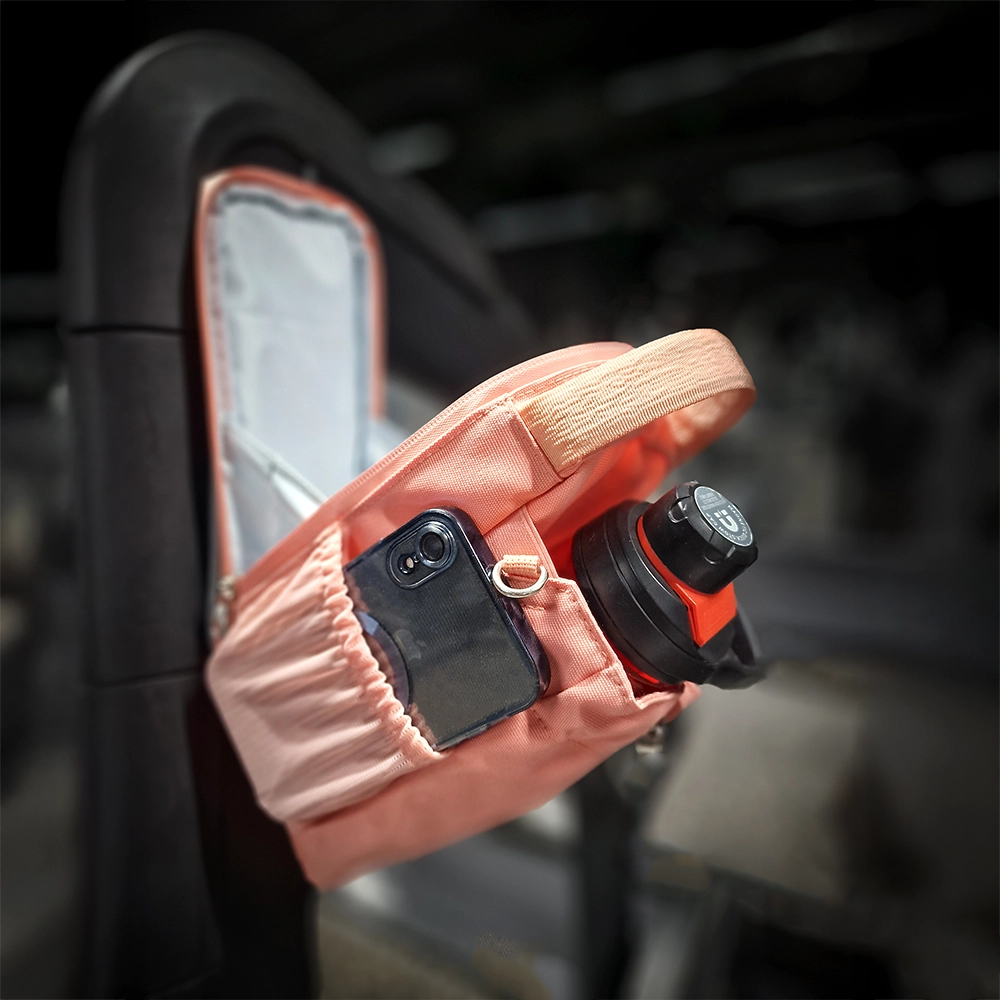 Tärkeät tavarasi kulkevat laukussa turvallisesti mukana ja ovat käden ulottuvilla. Voit kiinnittää laukun lähimpään kuntosalilaitteeseen eikä sinun tarvitse toistuvasti kerätä tavaroitasi lattialta.